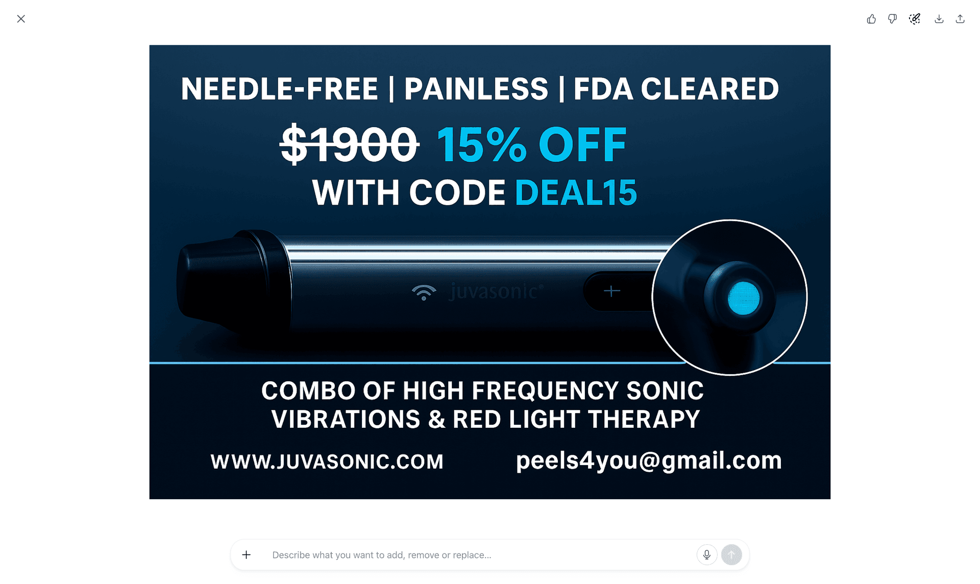 Juvasonic®, is a patent-pending innovation crafted to change the way you care for your skin. This advanced device temporarily perturbs (opens) the stratum corneum, creating an optimal pathway for enhanced absorption of your favorite cosmetic serums. By bridging the gap between topical application and deep delivery, Juvasonic® unlocks the full potential of your skincare routine.