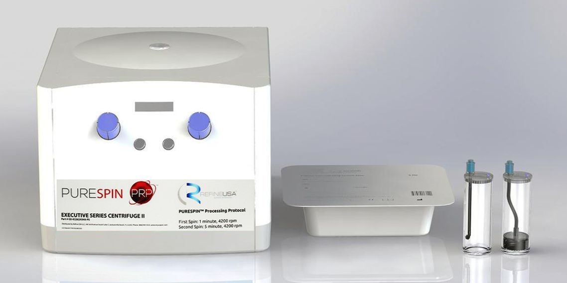 PureSpin PRP® is an FDA Cleared centrifuge system for the safe and rapid preparation of the autologous platelet-rich plasma from a small sample of the patient’s blood at the point of care. This advanced PRP system delivers a higher volume of viable platelets — 9.5 billion platelets in a 7 mL treatment sample — with the smallest amount of blood drawn from the patient. The PRP is also activated quicker than any other PRP centrifuge: only 6 minutes. PureSpin PRP® also has a hematocrit of less than 1%